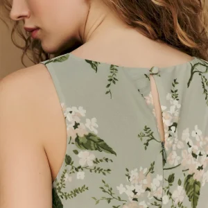 non-adjustable straps, crew neckline.