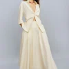 The model is wearing a size 0 and is 5’10”, 23″ waist, 34″ hips, 32″ bust.
