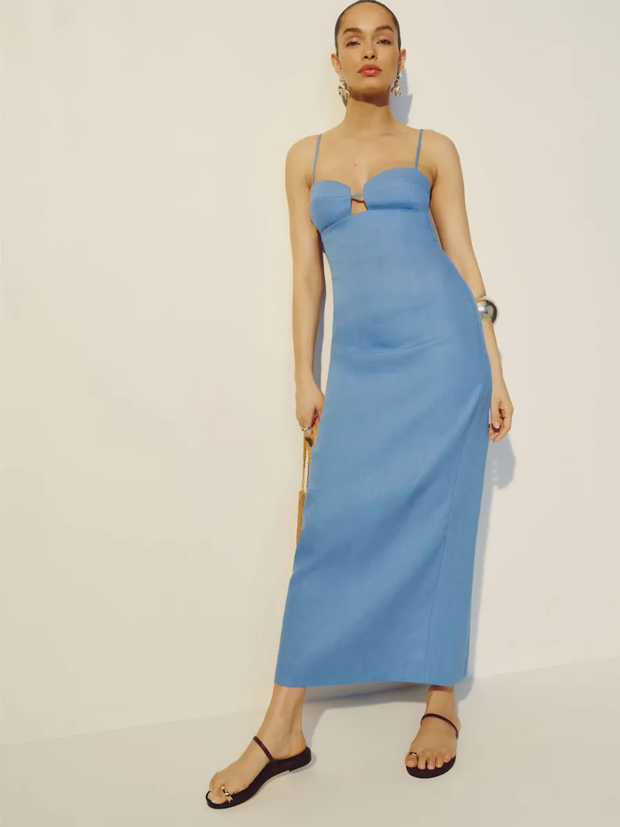 sweetheart neckline, back slit.