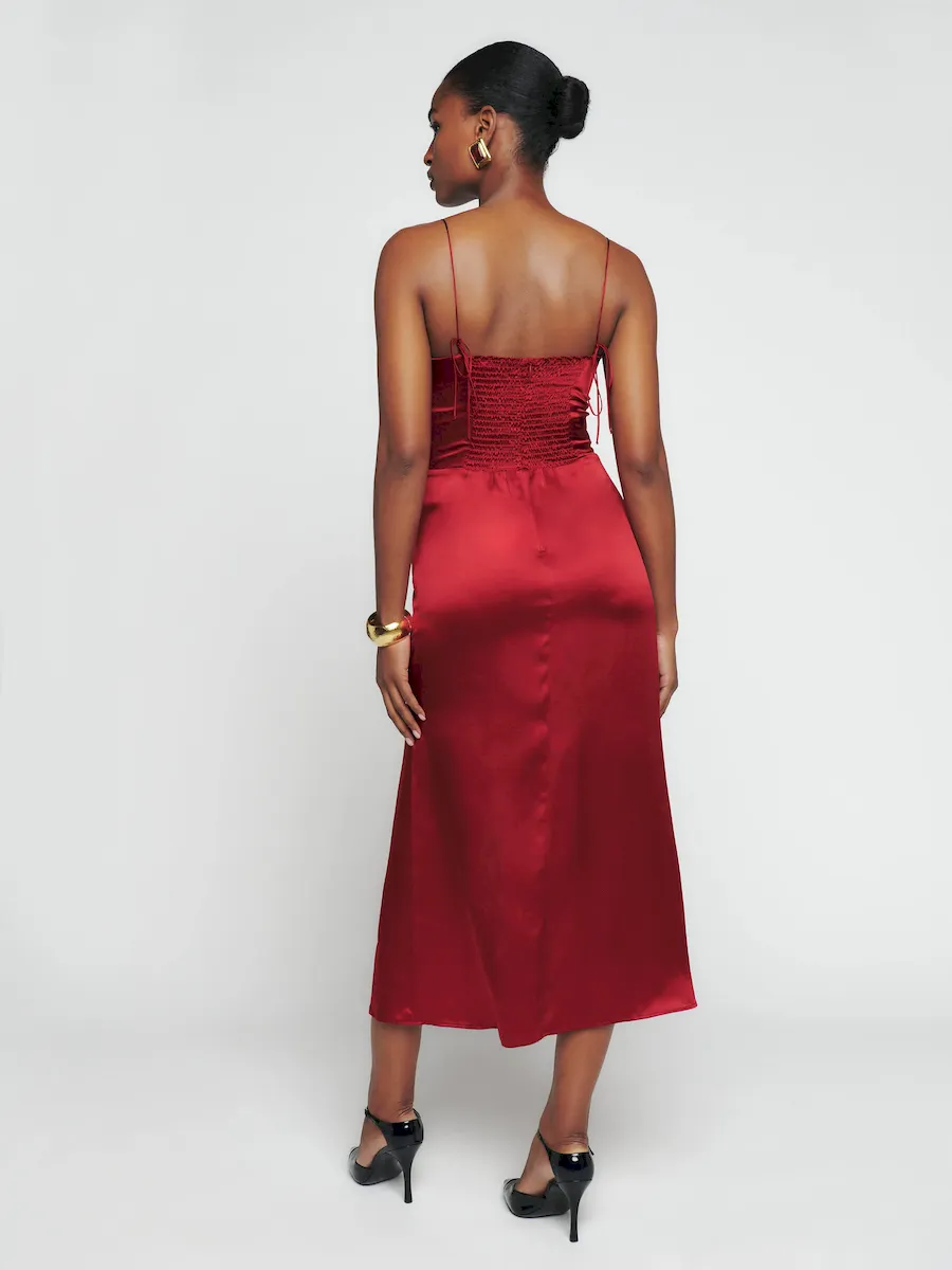 This is a lightweight silk charmeuse fabric – 100% silk. Dry clean only. More onfabric & care.