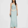The model is wearing a size 0 and is 5’10”, 24.5″ waist, 34.5″ hips, 31″ bust.