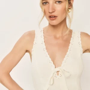 The model is wearing a size 0 and is 5’7″, 23″ waist, 34″ hips, 32″ bust.