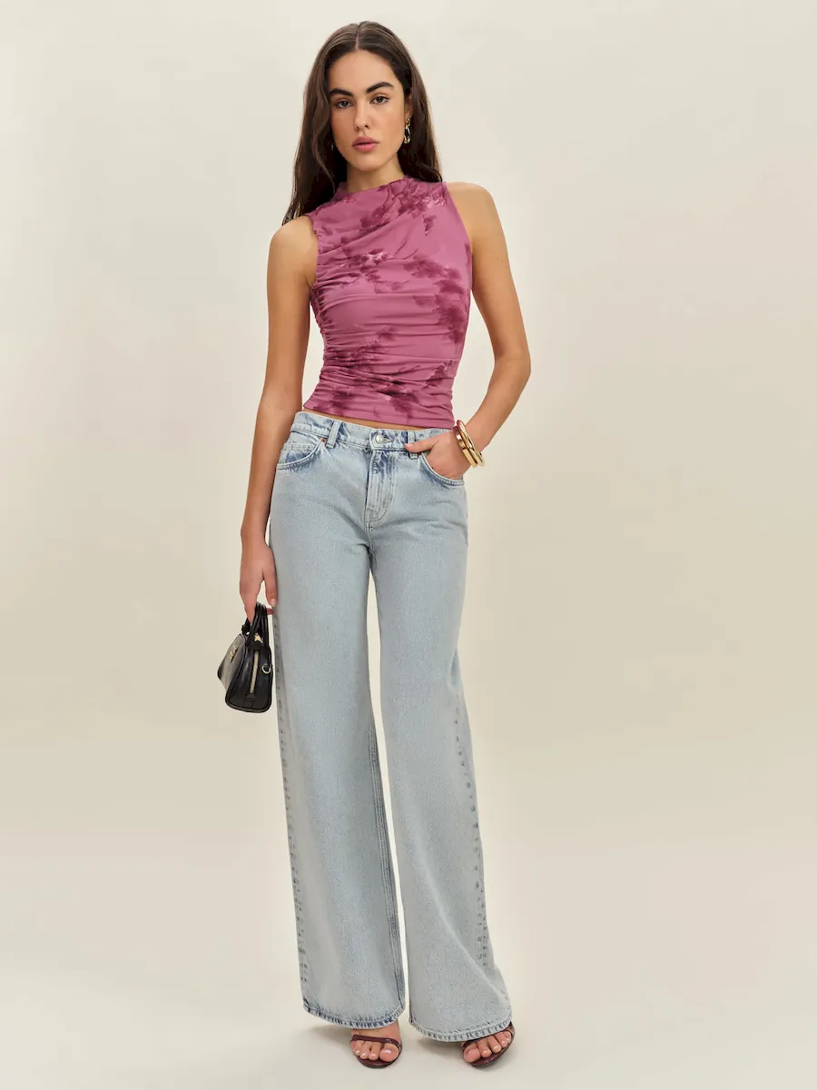The model is wearing a size XS and is 5′ 9.5″, 24″ waist, 34.5″ hips, 34″ bust.