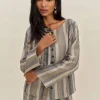 The model is wearing a size XS and has a 23.5″ waist, 34″ hips.