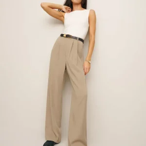 belt loops,finished hem,front buttons,pleated details,side pockets,the mason pant in sugar is slightly sheer,and zipper fly.