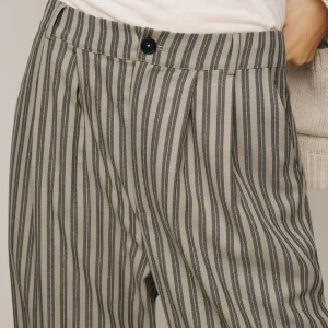 belt loops,finished hem,front buttons,pleated details,side pockets,the mason pant in sugar is slightly sheer,and zipper fly.