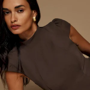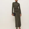 The model is wearing a size 0 and is 5’9″, 25″ waist, 35″ hips, 32″ bust.