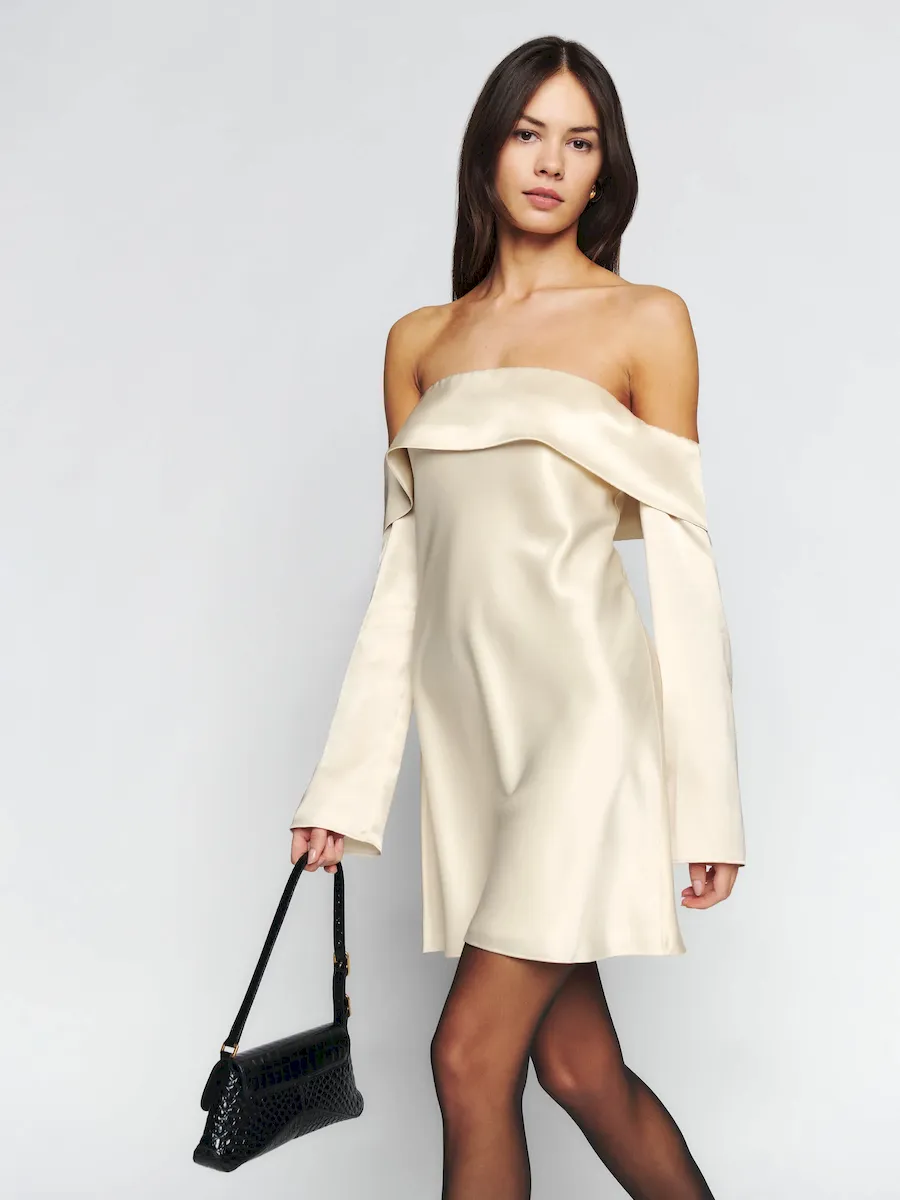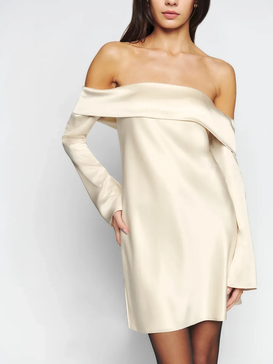 off the shoulder neckline.