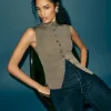 The model is wearing a size XS and is 5’11”, 24″ waist, 34″ hips, 32″ bust.