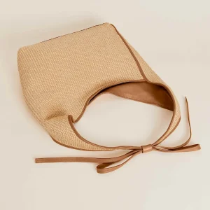a slouchy tote with a magnetic closure,features a decorative tie detail,and inside zip pocket with a card holder.