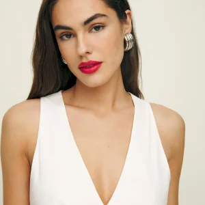 The model is wearing a size 0 and is 5′ 9.5″, 24″ waist, 34.5″ hips, 34″ bust.