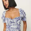 The model is wearing a size 0 and is 5′ 9.5″, 24″ waist, 34.5″ hips, 34″ bust.