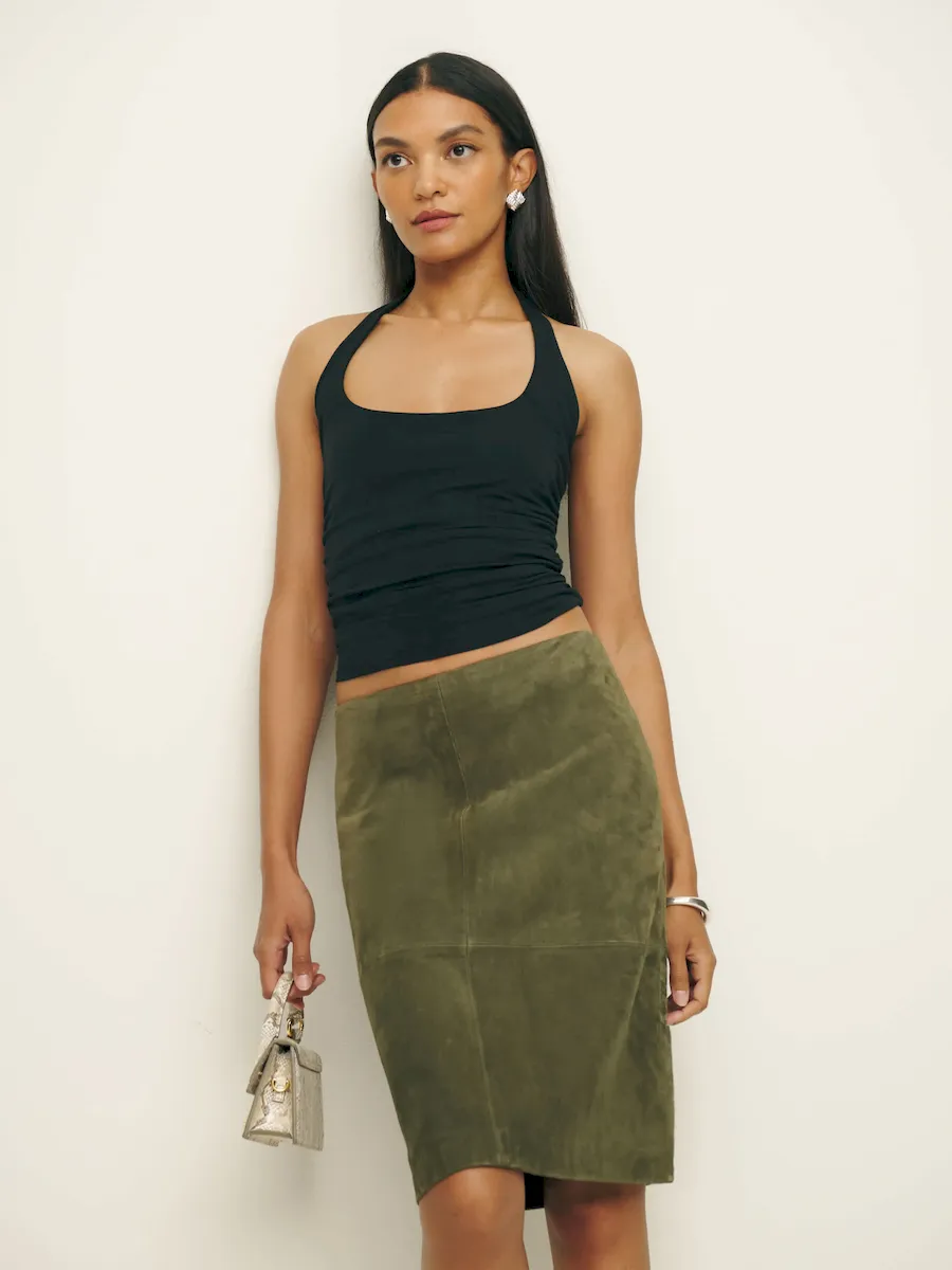 The model is wearing a size XS and is 5’11”, 24″ waist, 34″ hips, 32″ bust.