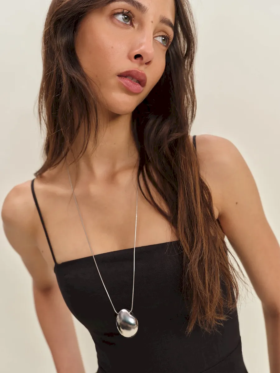 The model is wearing a size 2 and is 5’10”, 23″ waist, 34″ hips, 31″ bust.