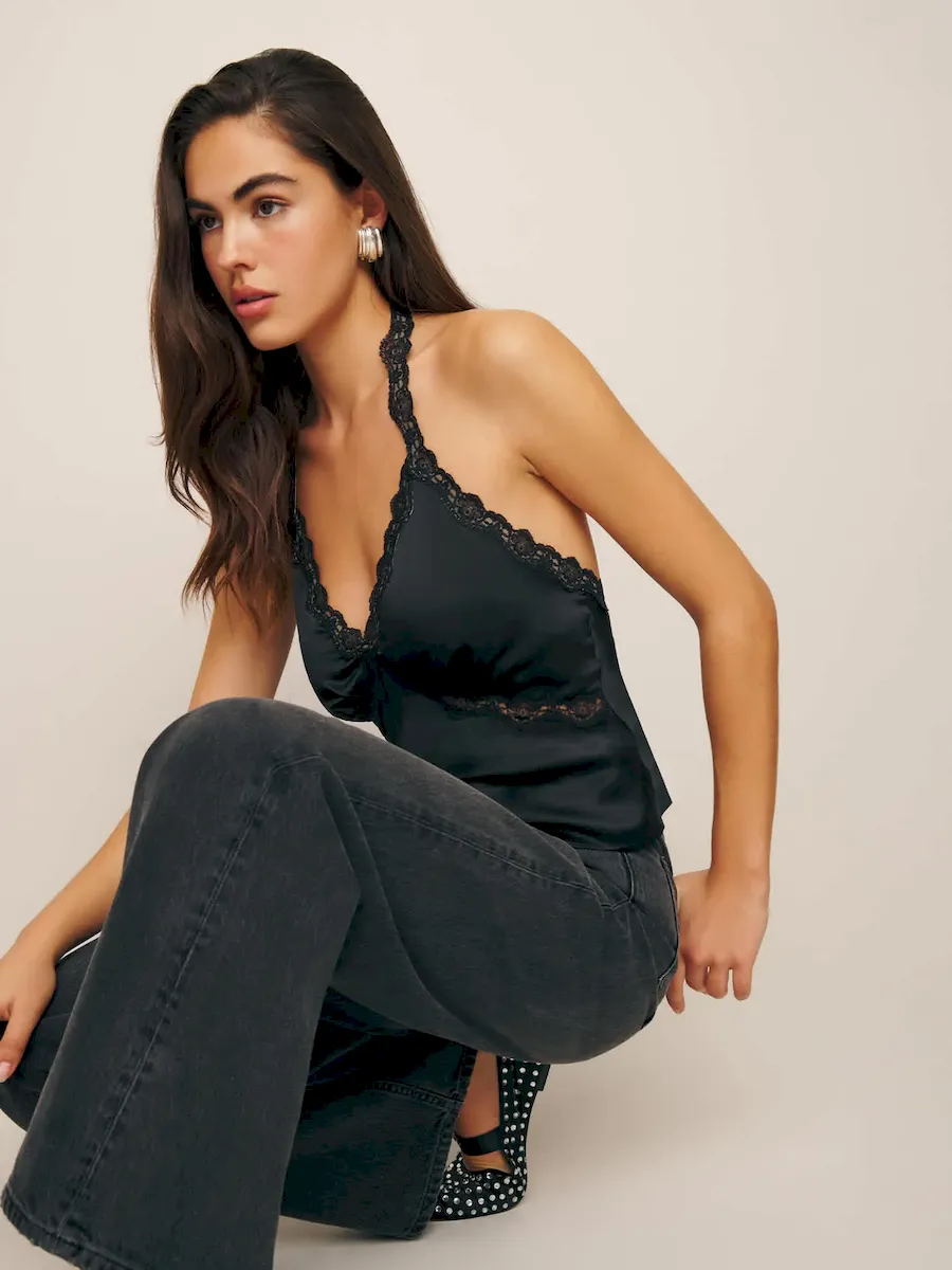 The model is wearing a size XS and is 5′ 9.5″, 24″ waist, 34.5″ hips, 34″ bust.