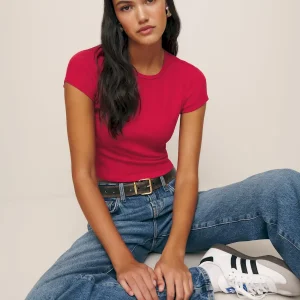 This is a 2×1 medium weight rib knit fabric with moderate stretch made from 97% Organically Grown Cotton and 3% Spandex. Hand wash + dry flat. More onfabric & care.