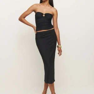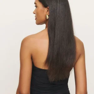 The model is wearing a size XS and is 5’11”, 24″ waist, 34″ hips, 32″ bust.