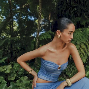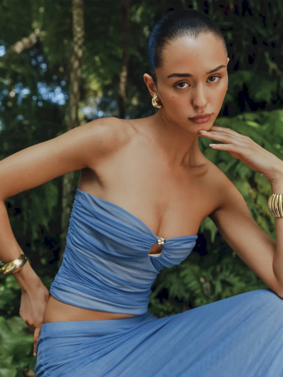The model is wearing a size XS and is 5’8″, 23″ waist, 35.5″ hips, 30″ bust.