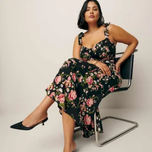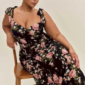 The model is wearing a size 14 and is 5’8″, 33″ waist, 50″ hips, 42″ bust.