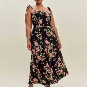 The model is wearing a size 14 and is 5’8″, 33″ waist, 50″ hips, 42″ bust.