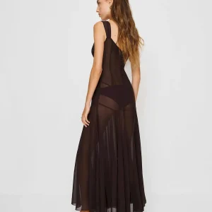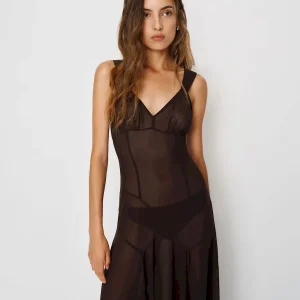The model is wearing a size 0 and is 5’9″, 24″ waist, 34″ hips, 30″ bust.