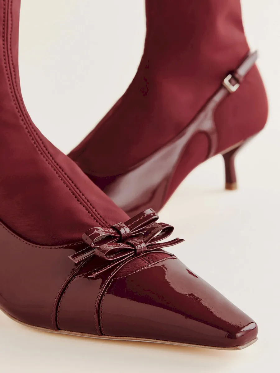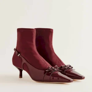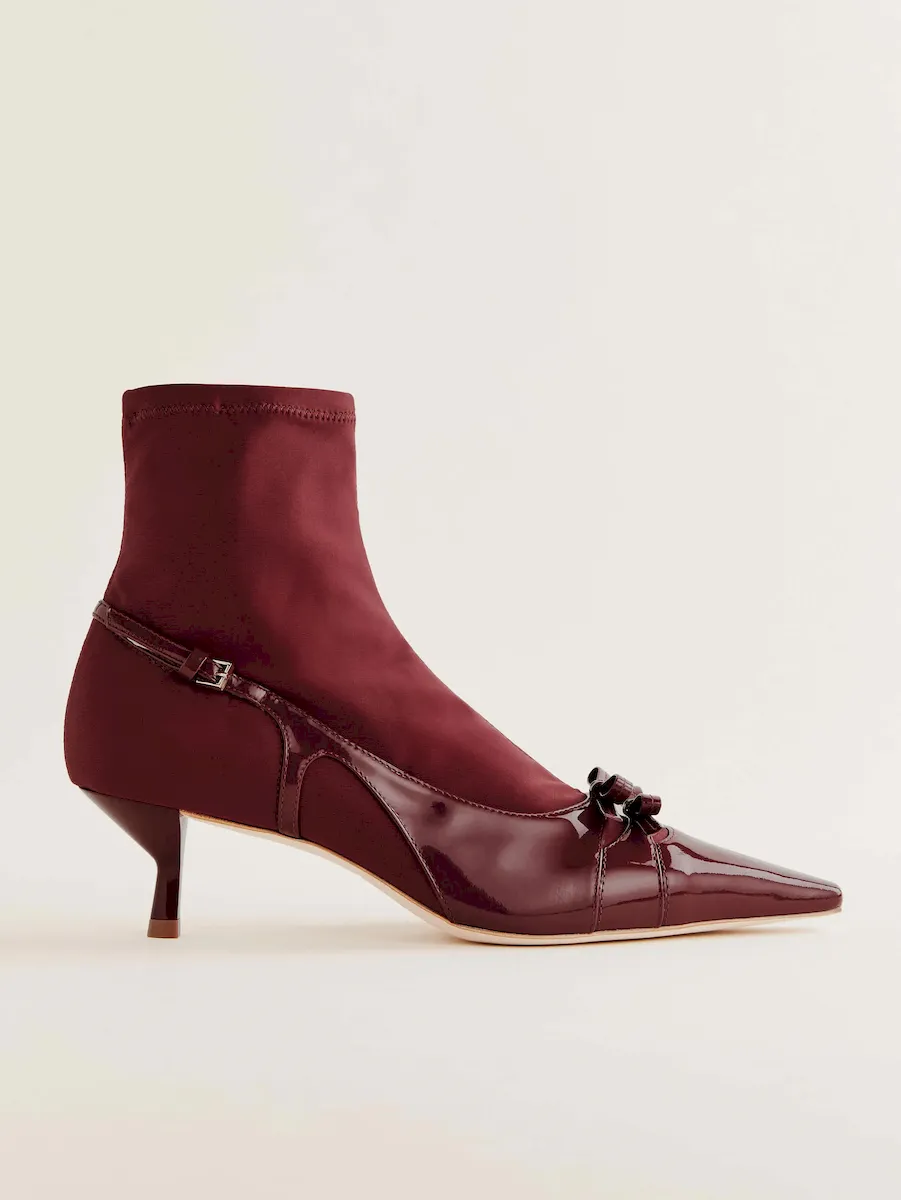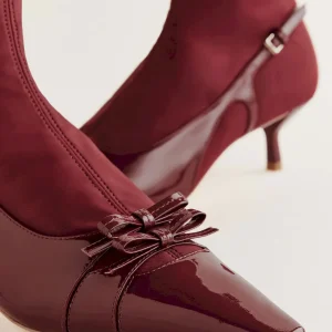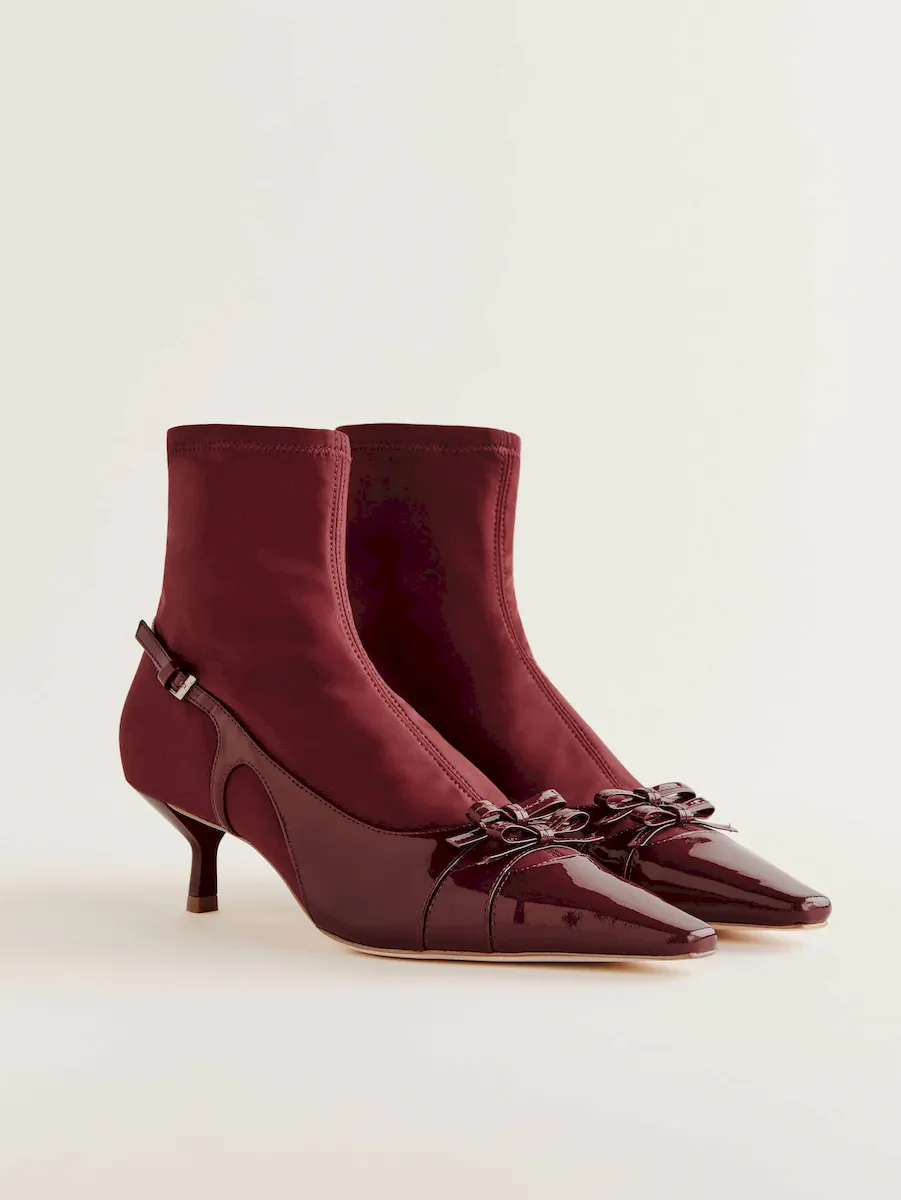 Bovine leather with lustrous patent finish. Spot clean. More onfabric & care.
