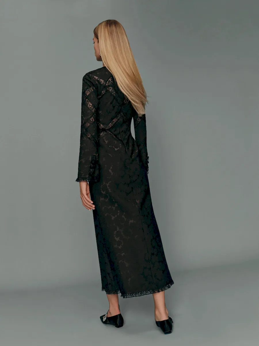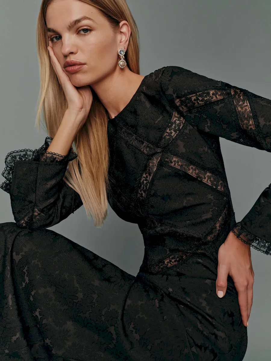 This deadstock fabric is a woven jacquard with motifs inspired by vintage floral lace designs. Made from 100% Polyester. Dry clean only. More onfabric & care.