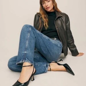 Bovine leather with lustrous patent finish. Spot clean. More onfabric & care.