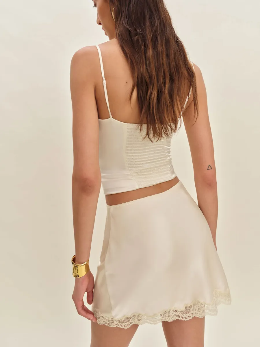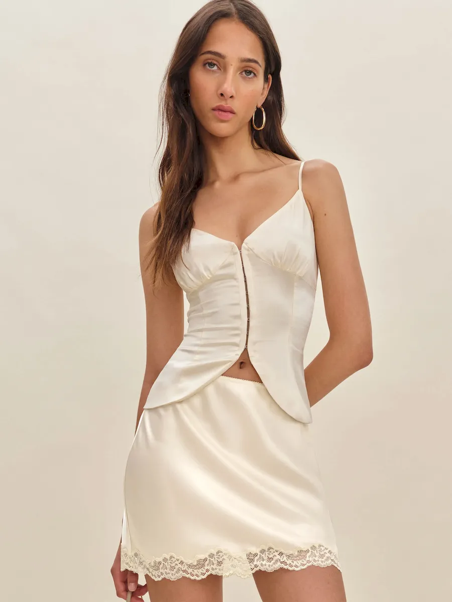 Made with 60% wood pulp and 40% repurposed waste. Feels way smoother and sexier than it sounds. Meet Naia™️ Renew, our silk alternative that cuts carbon and other harmful impacts of silk without changing any of the stuff you love about it.
