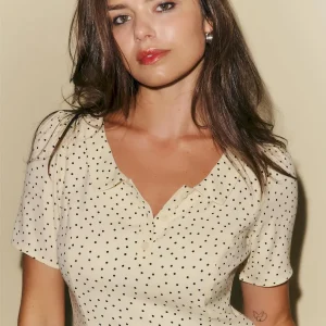 The model is wearing a size 6 and is 5’9″, 27″ waist, 38″ hips, 32″ bust.