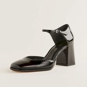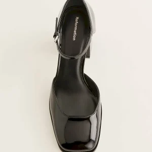Bovine leather with lustrous patent finish.