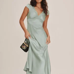 The model is wearing a size 2 and is 5’9.5″, 25″ waist, 36″ hips, 34″ bust.