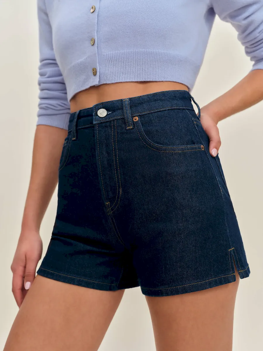 product size: 27, inseam: 3 1/2″, front rise: 12 5/8″, leg opening: 24 1/4″.