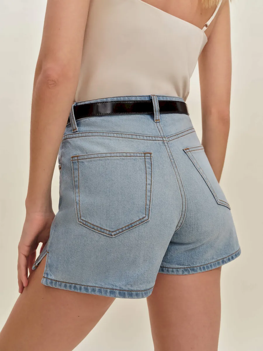 product size: 27, inseam: 3 1/2″, front rise: 12 5/8″, leg opening: 24 1/4″.
