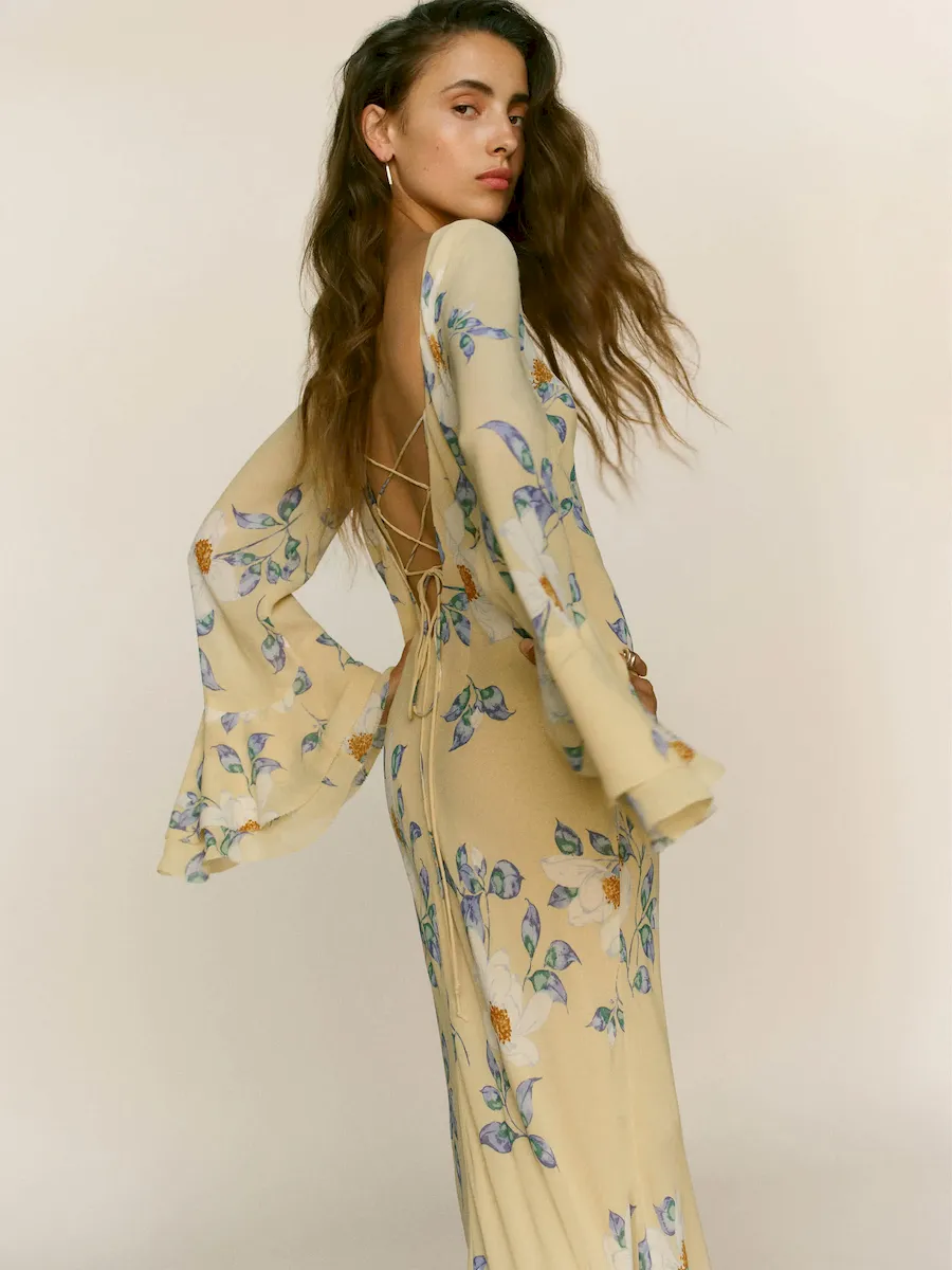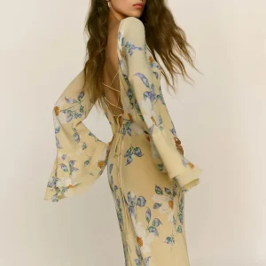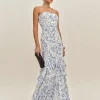 The model is wearing a size 0 and is 5’9″, 24″ waist, 34″ hips, 30″ bust.