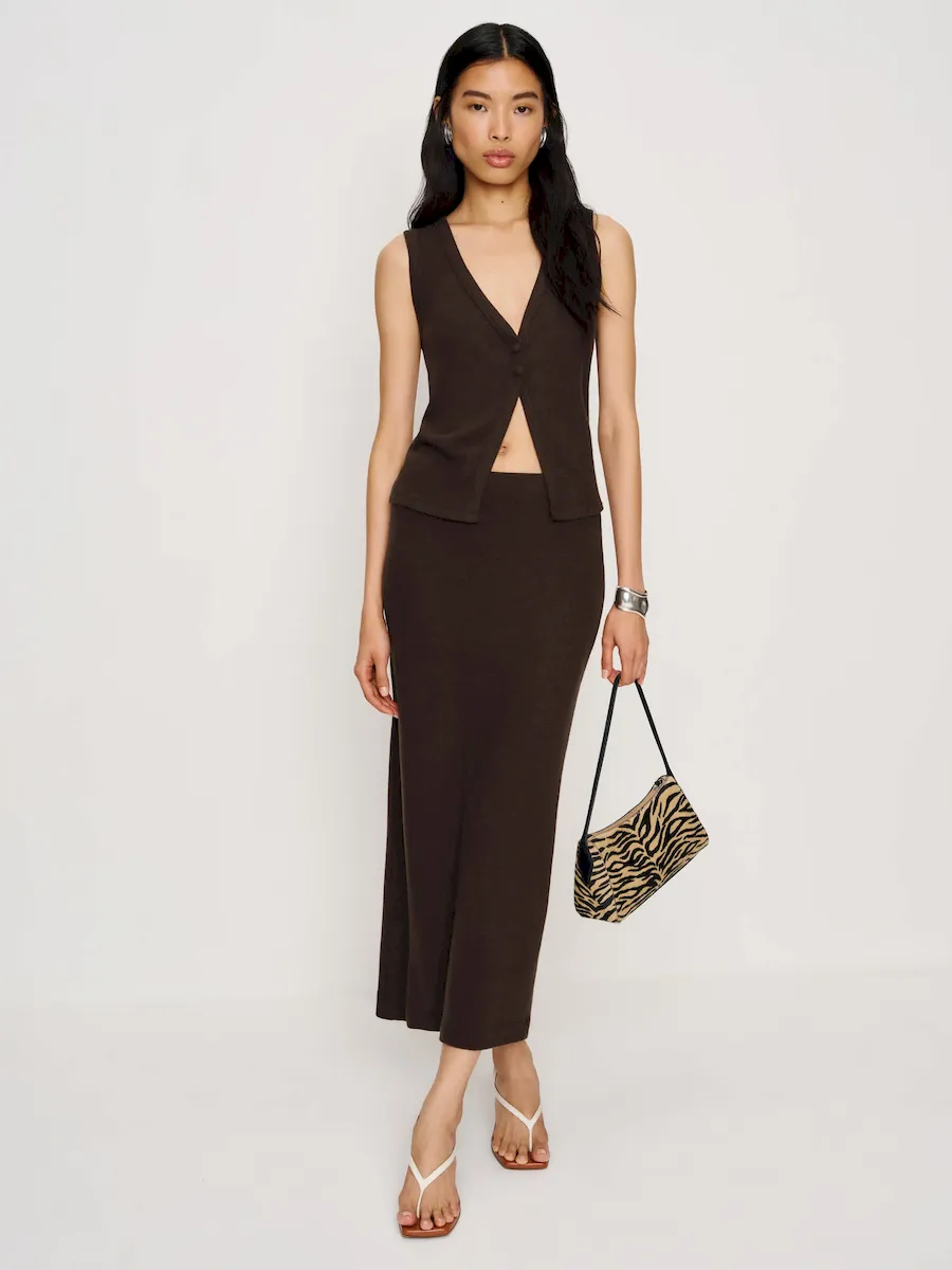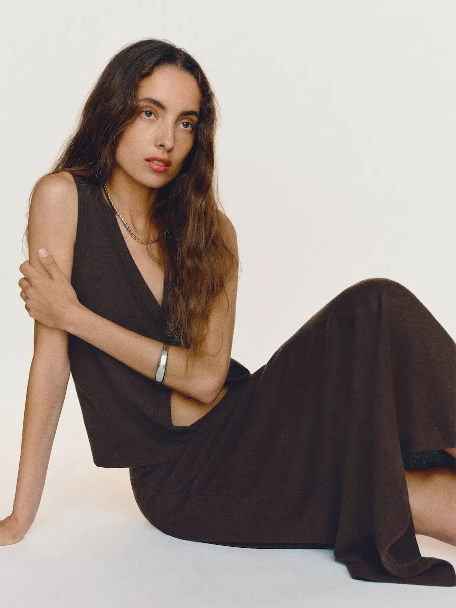 The model is wearing a size XS and is 5’9″, 24″ waist, 34″ hips, 30″ bust.