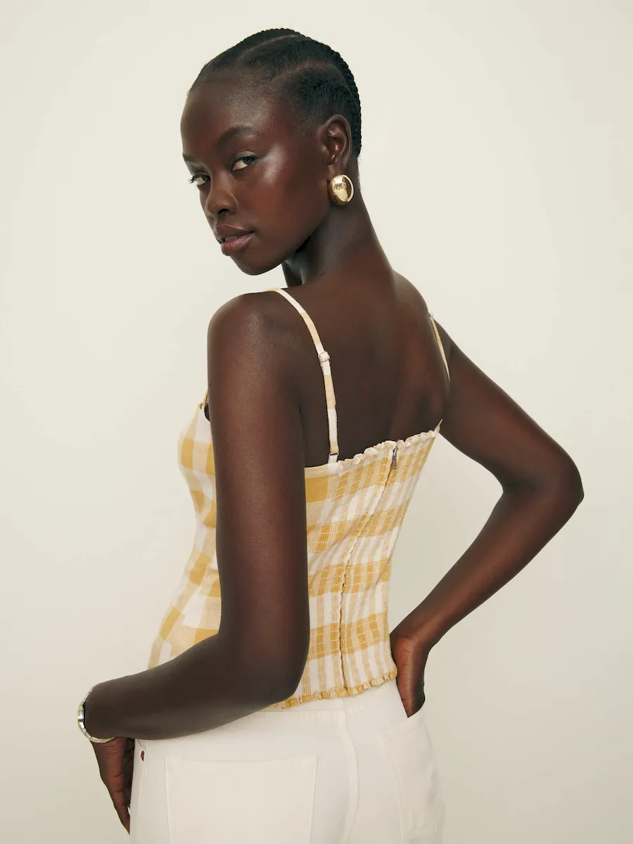 back smocking, adjustable straps.