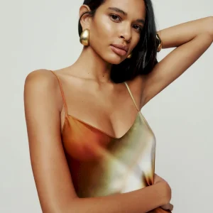 This is a lightweight silk charmeuse fabric – 100% silk. Dry clean only. More onfabric & care.