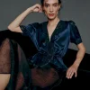 The model is wearing a size XS and is 5’9″, 24″ waist, 34″ hips, 31″ bust.