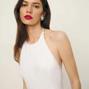 The model is wearing a size 0 and is 5’9″, 24″ waist, 34″ hips, 32″ bust.