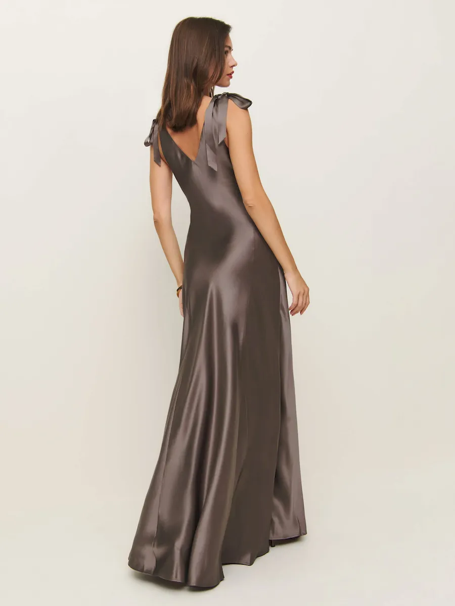 Intended to graze the floor when worn with heels. Hemming may be necessary to achieve desired length.