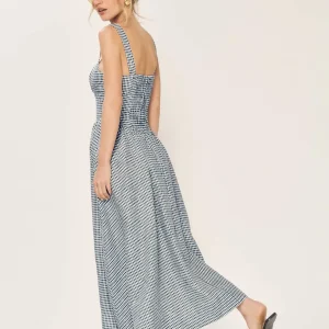 back smocking, adjustable straps, scoop neckline.