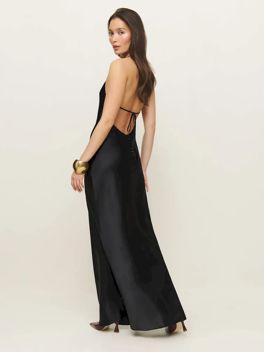 tie straps, halter neckline.