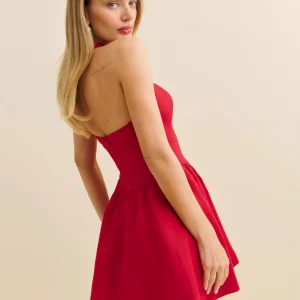 smocking details, halter neckline.
