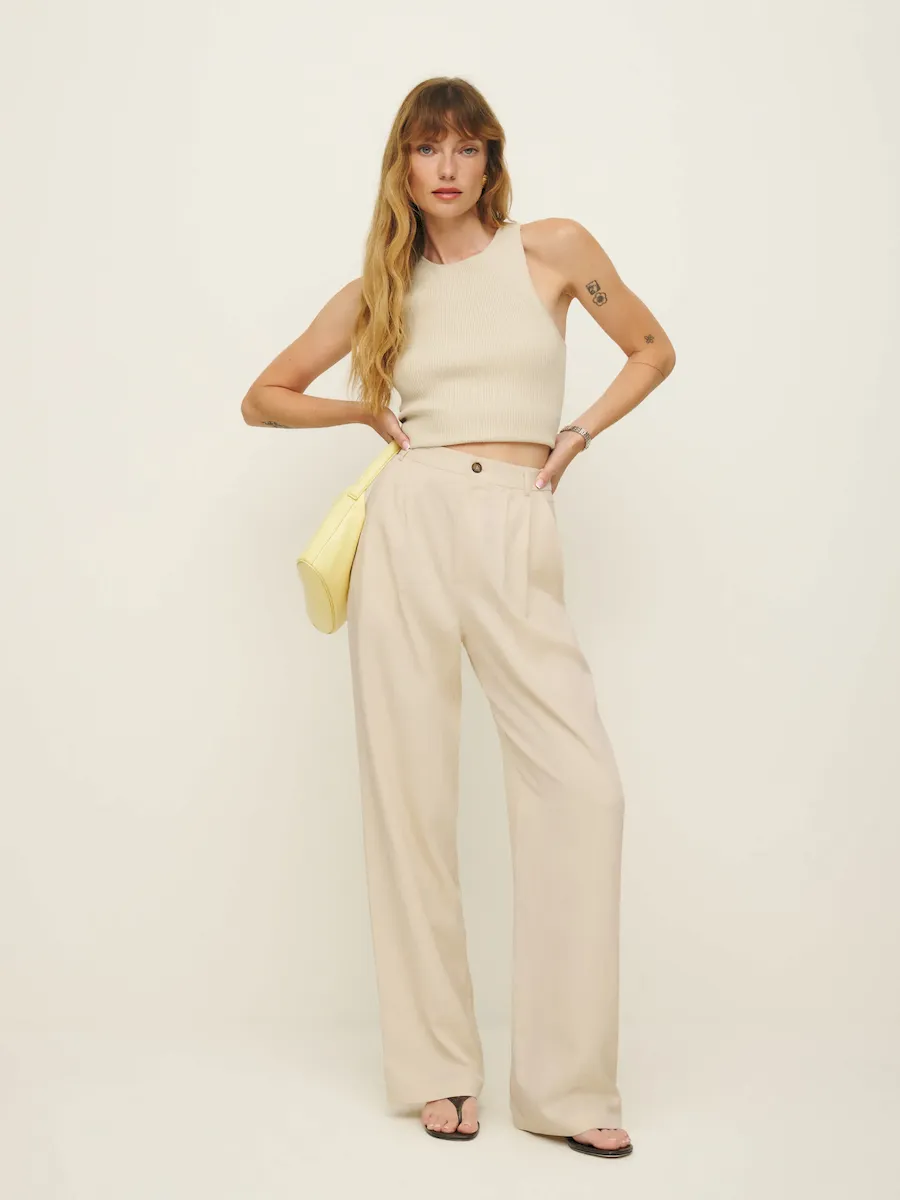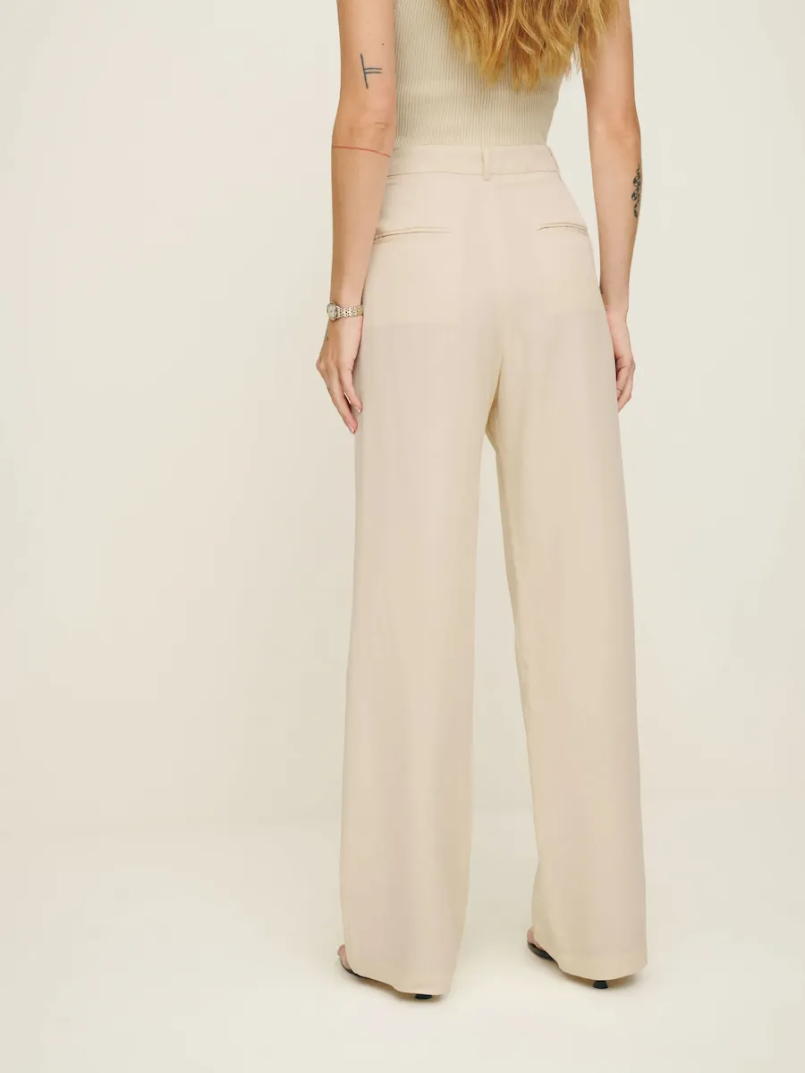 belt loops,front buttons,finished hem,pleated details,side pockets,and zipper fly.