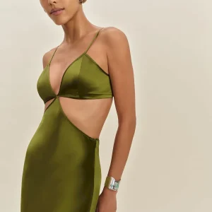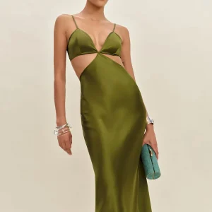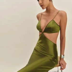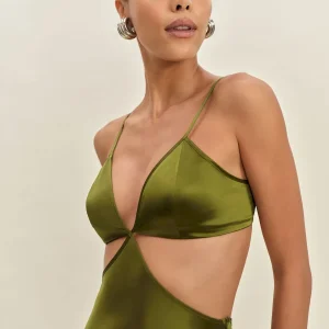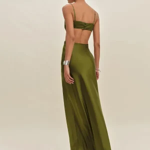 The model is wearing a size 4 and is 5’11”, 26″ waist, 38″ hips, 35″ bust.