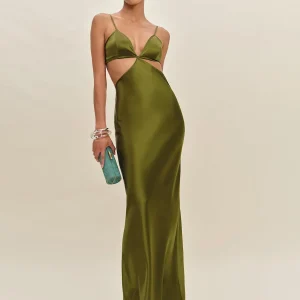 The model is wearing a size 4 and is 5’11”, 26″ waist, 38″ hips, 35″ bust.