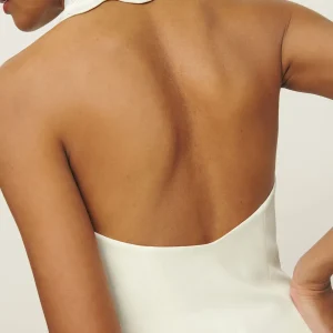 The model is wearing a size 0 and is 5’11”, 24″ waist, 34″ hips, 32″ bust.