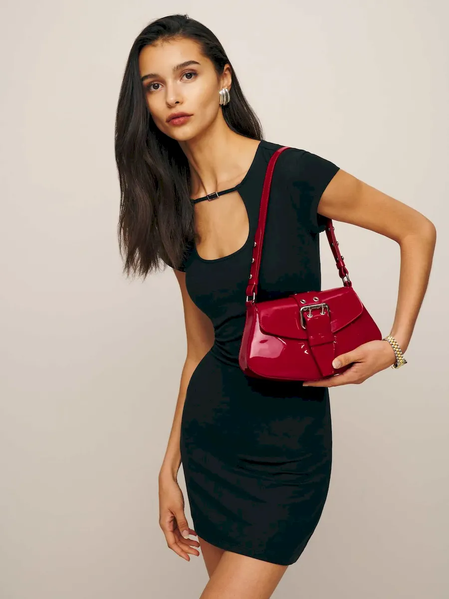 Flexible and rich patent leather. Spot clean. More onfabric & care.