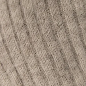 This sweater is knitted using our fine gauge recycled cashmere and tissue weight alpaca yarns- blended fiber content is 41% Nylon, 33% Recycled Cashmere, 24% Baby Suri Alpaca, and 2% Virgin cashmere.